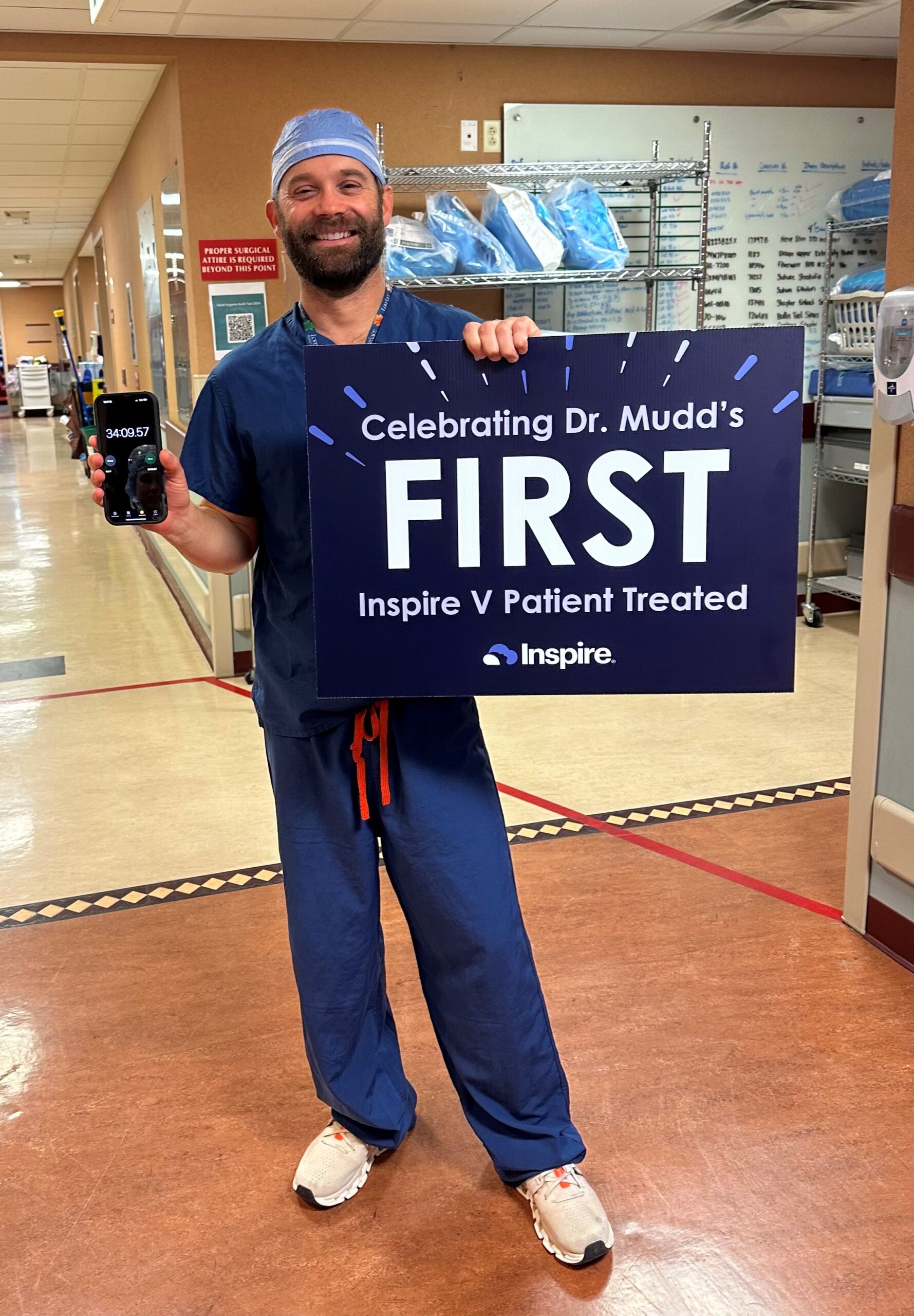 “The new Inspire V® system is an advancement in Inspire therapy, featuring a new integrated respiratory sensor that eliminates the need for a separate sensing lead,” said Dr. Mudd, who completed the first Inspire V® procedure in 34 minutes. “The implant delivers gentle pulses to the airway muscles to keep the airway open, so patients can breathe regularly and sleep soundly. It is life-changing for my patients who cannot tolerate a CPAP.”